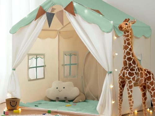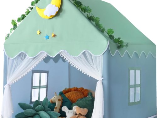 Extra Large Toddler Play Tent & Kids Tent Play Tents with Flags & Star Lights, Portable & Foldable Teepee, Bed Canopy for Boys & Girls, Indoor Outdoor Dome Tents Playhouse, 59x39x59 in,Green