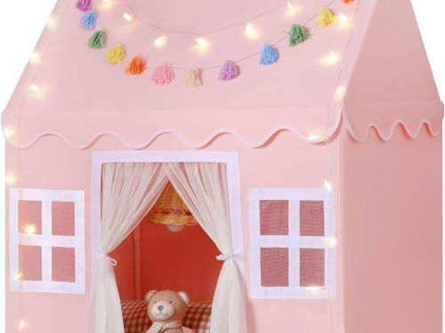 Kids Play Tent Indoor: with Mat, Tassel Garland, Star Lights - Pink Girl Tent Playhouse for Toddlers Kids Toys for Boy Girl Birthday Gift for Kids