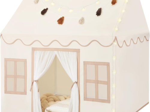 Kid Tent with Mat, Star Lights - Kids Play Tents for Toddlers Kids Tents Indoor Playhouse - Princess Tent for Girls Toy House Gift (Beige with Mesh)