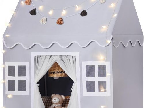 Kids Play Tent Indoor: Mat, Tassel Garland, Star Lights - Gray Girl Tent Playhouse for Toddlers Kids Toys for Boy Girl Birthday Gift