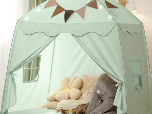 Kid Tent with Mat, Star Lights - Kids Play Tents for Toddlers Kids Tents Indoor Playhouse - Princess Tent for Girls Toy House Gift (Green with Mesh)