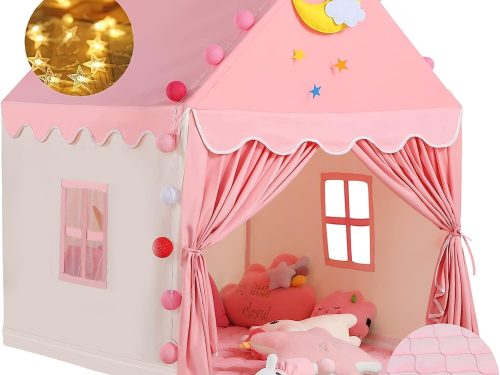 Kid Tent with Mat, Star Lights - Kids Play Tents for Toddlers Kids Tents Indoor Playhouse - Princess Tent for Girls Toy House Gift (Pink with Cloth)