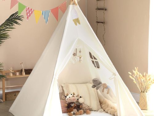 - BOHO STYLE & ABUNDANT ACCESSORIES: With 4 vibrant colors—cream, pink, brown, and green—this toddler tent appeals to children’s aesthetic senses. It suits both boys and girls and complements any room decor. Decorative string lights and colorful flags add a charming, playful touch. Suitable as a present, it inspires imagination and creativity